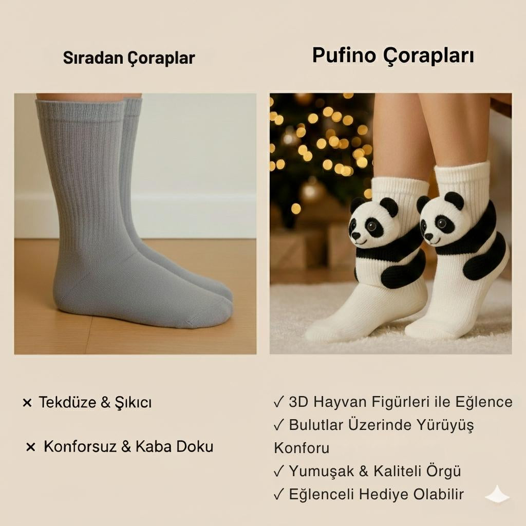🧦 Pufino 3D Hayvanlı Çoraplar,
